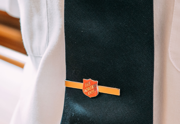 私たち救世軍はこのような背景から軍隊の形式、そして軍隊の制服を着用し、軍旗を持っています。これらは世界中どこへ行っても救世軍だと一目でわかるように、という意味も込められています。