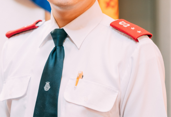 キリストの兵士であることを目に見える形で表すために、救世軍の兵士(クリスチャン)は青い肩章の付いた制服を着ます。襟に付いたSのエンブレムは「救い」(Salvation)の頭文字です。伝道者を養成する士官学校(神学校)で二年間の訓練を受けて救世軍の士官に任官された者は、赤い肩章と襟章の付いた制服を着用します。士官は奉仕の年数により、中尉、大尉、少佐と昇進し、また、特別な任務を与えられて、大佐補、大佐、中将に昇進する士官もいます。