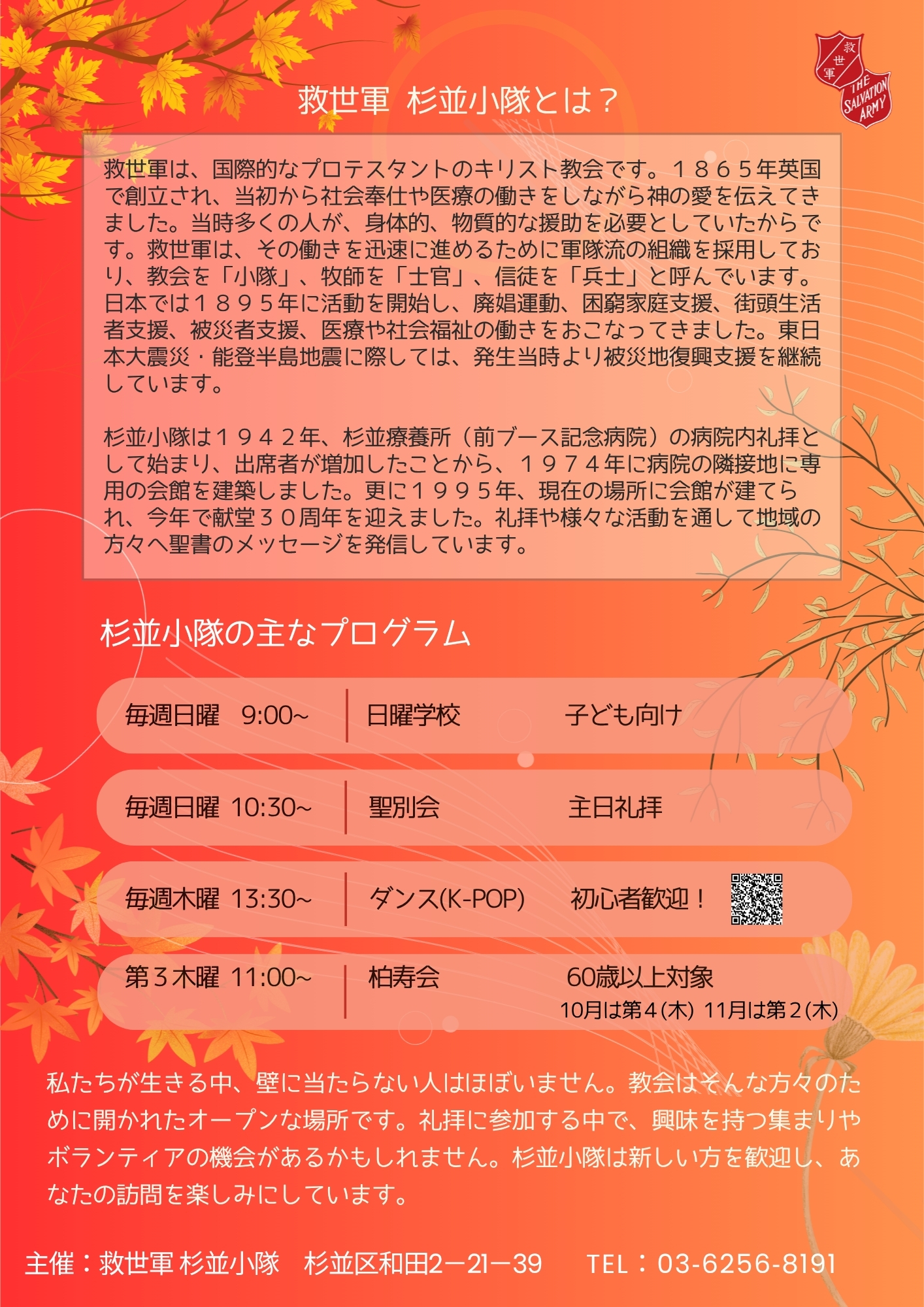 場所:救世軍杉並小隊総合センター(杉並区和田2-21-39)