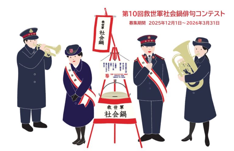 社会鍋俳句コンテストの募集を12月1日(月)から開始します。 「社会鍋」は俳句の季語(冬)にもなっております。救世軍の働きが日本で始まって2025年で130年を迎えますが、社会鍋は集金鍋1906年(明治)、慈善鍋(大正時 … 続きを読む 第10回社会鍋俳句コンテスト