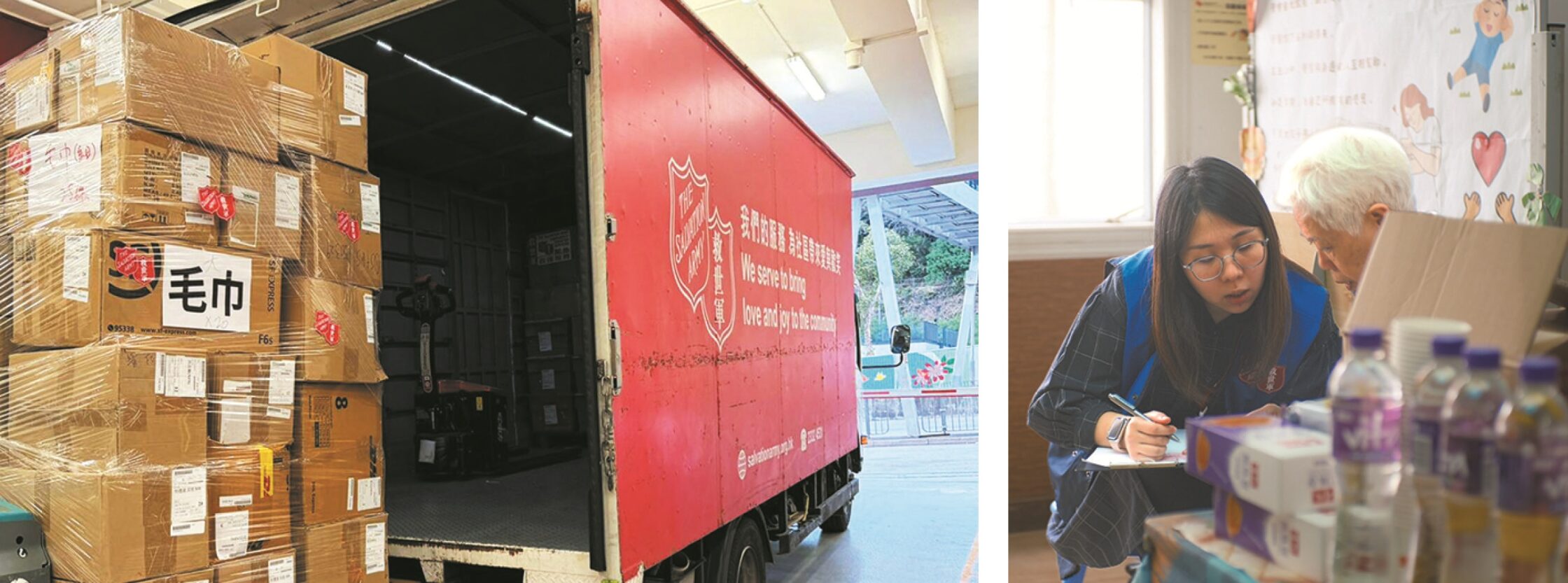 昨年11月26日に香港北部の大埔区にある高層マンション宏福苑で火災が発生し、150人以上の死者が出る大惨事となりました。火災発生当日、現地の救世軍では、宏福苑付近にある救世軍の2つの施設を緊急に開放し、被災した高齢者と家族を受け入れました。ソーシャルワーカーと心理学の専門家が人々の対応にあたり、救世軍の士官(伝道者)10人が牧会的ケアを提供するために派遣されました。夜には、暖かい衣類や支援物資が被災者に届けられました。翌朝、被害の大きさが明らかになると、救世軍は政府と協力し、香港全域で200世帯の住宅を確保するとともに、寝具、衣類、その他の必需品の配布をおこないました。