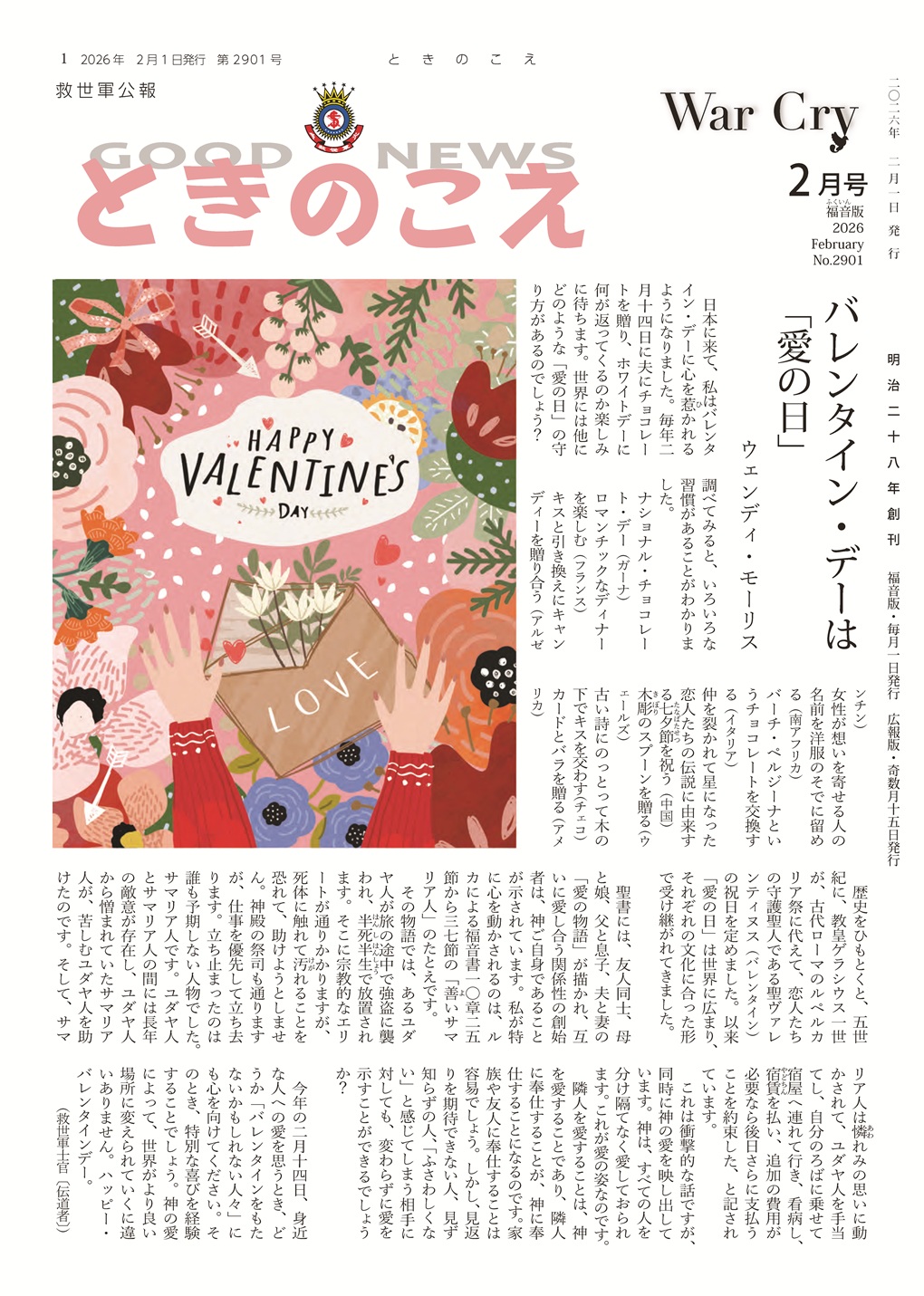 今年の2月14日、身近な人への愛を思うとき、どうか「バレンタインをもたないかもしれない人々」にも心を向けてください。そのとき、特別な喜びを経験することでしょう。神の愛によって、世界がより良い場所に変えられていくに違いありません。ハッピー・バレンタインデー。